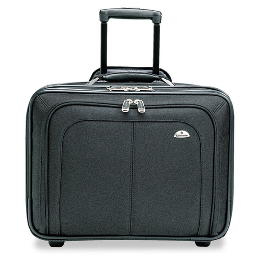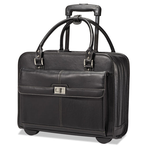 Telescopic handle system and in-line wheels make it convenient for sales reps and other professionals to get around. Leather-trimmed with Tufide® c...