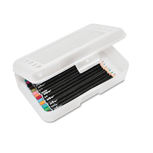 Pencil box keeps writing instruments together and conveniently stored away. Features a hinged lid and see-through window that lets you easily see c...