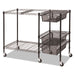 Mobile File Cart w/Drawers, 38w x 15.5d x 28h, Black. Holds letter and legal size hanging file folders (sold separately). Three drawers hold a wide assortment of items. Six easy roll casters, two locking. Extra large 9.5w x 14.5d x 3.75h drawers. Color: Black; Color Family: Black; Caster/Glide/Wheel: Six Easy-Roll Casters (2 Locking); Material(s): Steel.