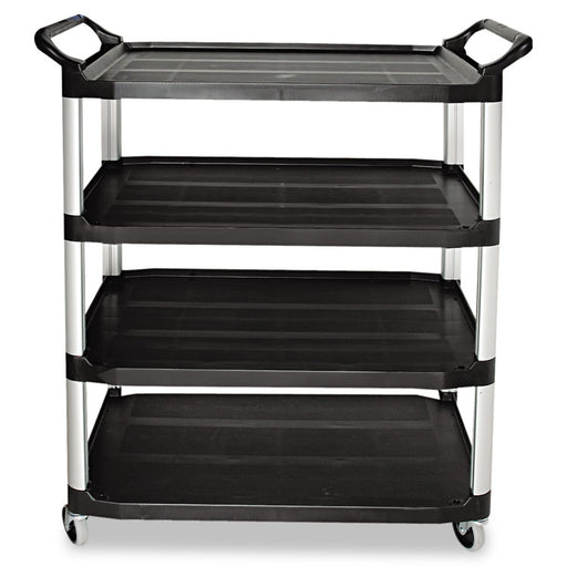 The Rubbermaid Commercial Xtra Utility Cart, 3 Shelf, functions in front and back of house applications. This rolling utility cart has open sides t...