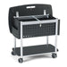 Scoot Mobile File, 29.75w x 18.75d x 27h, Black/Silver. Locking laminate top doubles as additional workspace. Two side pockets offer easy access to active files. Bottom shelf provides additional storage space. Color: Black/Silver; Color Family: Black; Caster/Glide/Wheel: 4 Dual-Wheel Casters (2 Locking); Overall Width: 29.75".