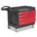 TradeMaster Cart, 750-lb Capacity, One-Shelf, 26.25w x 49d x 38h, Black. The Rubbermaid Commercial TradeMaster Utility Cart easily transport tools and supplies where you need them. The utility cart is made from a durable structural foam construction. The rolling utility cart is low maintenance, and rust, dent, and chip resistant. These utility carts feature a comfort grip, user-friendly handle and molded-in compartments for small parts or tools. The utility cart includes 5-inch non-marking casters, 2 fixed and 2 swivel with total lock brakes and full-extension, ball bearing drawer slides. Single key lock secures all drawers and allows one drawer to open at a time. Four Drawers;One Cabinet. Color: Black; Color Family: Black; Capacity (Weight): 750 lbs; Caster/Glide/Wheel: Two 5" TPR Fixed-Position Casters; Two 5" TPR Swivel Casters.