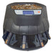 Coin Counter/Sorter, Pennies through Dollar Coins. Recognizes individual coin denominations and sorts them automatically into large bins. Built-in handle makes transporting convenient. Easy-to-read LED display shows the number of coins and dollar amounts for each denomination as well as the grand total. Makes coin wrapping simple. Cash/Coin Counter Type: Coin Sorters/Counters; Denomination: Dimes; Nickels; Pennies; Quarters; Dollar Coins; Bill/Coin Capacity: 2000; Counting/Sorting Speed: 300 Coins/Min.