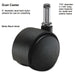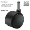 Duet Dual Wheels, Nylon, C Stem, 110 lbs/Caster, 5/Set. 2" dia. dual wheels for light-to-medium duty applications. Designed to fit most metal base furniture. Weight rated 110 lbs. per caster wheel. Caster/Glide/Wheel: Grip Ring Stem Twin Wheel Casters; Color: Matte Black; Stem Type: C; Weight Capacity (text): 110 lbs Per Caster.