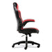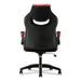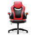 9-Twelve High-Back Racing Style Chair with Flip-Up Arms, Supports up to 225 lbs., Black Seat/Red Back, Black Base. Where quality meets value. Delivers high-tech style and high-performance comfort and support. Innovative design appeals to gamers of all ages. Features bonded leather seat and back with color leather accents and matching detailed stitching. Quickly flip the padded leather arms down whenever you want a little extra support, then flip them up whenever you want more freedom of movement. Trendy chair swivels 360-degrees and features a tilt control that supports a variety of reclining positions, perfect for a variety of gaming postures. Recommended Applications: General Office & Task; Seat Color: Black; Back Color: Red; Color Family: Red.