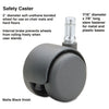 Safety Casters, Oversized Neck, Grip Ring Type B Stem, 2" Soft Polyurethane Wheel, Matte Black, 5/Set. 2" dia. dual wheels. Weight rating: 110 lbs per caster. Oversized Neck. Caster/Glide/Wheel: Caster; Color: Matte Black; Stem Type: B; Weight Capacity (text): 110 lbs Per Caster.