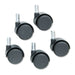 Safety Casters, Standard Neck, Nylon, B Stem, 110 lbs/Caster, 5/Set. 2" dia. dual wheels. Weight rating: 110 lbs per caster. Standard Neck. Caster/Glide/Wheel: Caster; Color: Matte Black; Stem Type: B; Weight Capacity (text): 110 lbs Per Caster.