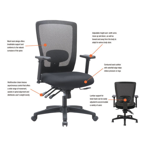 This high-back chair with mesh has swivel-tilt with lock and tension control which allows users to adjust to the demands of the workday. Controls a...