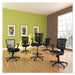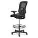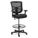 Alera Elusion Series Mesh Stool, 33.13" Seat Height, Supports up to 275 lbs., Black Seat/Black Back, Black Base. Ergonomically designed stool adjusts to fit multiple users. Cool, breathable mesh back. Contoured seat cushion with waterfall edge to help relieve pressure on knees. Adjustable foot ring for leg support. Weighted steel reinforced five-star base with casters or glides. Height adjustable ratchet back for optimal lumbar support. Height- and width-adjustable arms with soft pads. Recommended Applications: General Office & Task; Seat Color: Black; Back Color: Black; Color Family: Black.