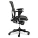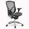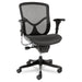 Alera EQ Series Ergonomic Multifunction Mid-Back Mesh Chair, Supports Up to 250 lb, Black. A high-tech aesthetic chair with premium ergonomic features. Synchro-Tilt mechanism offers customized support. Breathable elastic polyester mesh seat and back. Waterfall seat reduces pressure at the back of your knees for improved circulation. Easy reach seat levers for height and back adjustment. Soft arms are adjustable up and down front to back and at angles. Five-star base with casters for easy mobility. Recommended Applications: Executive & Management; Seat Color: Black; Back Color: Black; Color Family: Black.