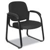 Alera Genaro Series Half-Back Sled Base Guest Chair, 25" x 24.80" x 33.66", Black. Clean, classic lines complement any office environment. Configure to create reception, lounge, conference, and waiting rooms. Thickly padded for maximum comfort. Durable upholstery withstands everyday use. Padded armrests for soft support. Sturdy steel sled base. Recommended Applications: Guest, Reception, Waiting Room & Lounge; Seat Color: Black; Back Color: Black; Color Family: Black.
