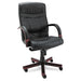Alera Madaris Series High-Back Knee Tilt Bonded Leather Chair,Wood Trim, Supports Up to 275 lb, Black Seat/Back,Mahogany Base. Mid-range knee tilt and high-back combine for relaxed comfort. Soft touch black leather and padded armrests. Mahogany finish trim for a touch of warmth. Recommended Applications: Executive & Management; Seat Color: Black; Back Color: Black; Color Family: Black.
