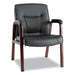 Alera Madaris Series Leather Guest Chair with Wood Trim Legs, 24.88" x 26" x 35", Black Seat/Black Back, Mahogany Base