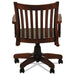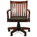 Alera Postal Series Slat-Back Wood/Leather Chair, Supports up to 275 lbs., Cherry Seat/Black Back, Cherry Base. Iconic wood slat office chair updated for the modern office. Rich cherry wood finish with leather seat. Durable metal reinforced wood five-star base for mobility. Tilt lock and tension controls rate of recline to accommodate any user. Recommended Applications: Conference, Training & Meeting; Executive & Management; General Office & Task; Seat Color: Cherry; Back Color: Black; Color Family: Cherry.