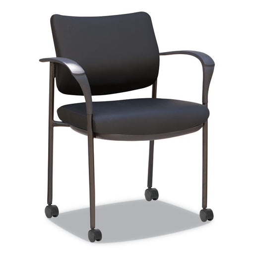 An impressive guest chair that feels as good as it looks. Soft touch black leather upholstery. Padded armrests for comfort. Stylish and durable sol...