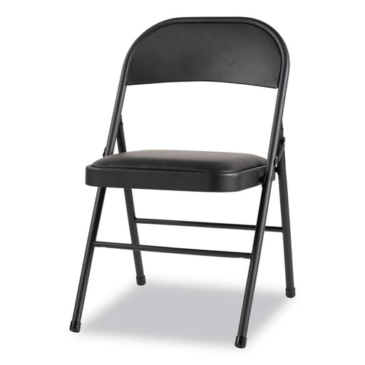 Traditional armless steel folding chairs are an office necessity. Sturdy tubular steel frame construction. Textured powder-coated finish resists sm...