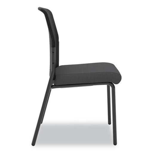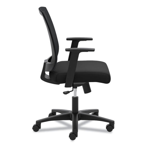 Breathable mesh back conforms to the upper body for added comfort. Upholstered seat features detailed stitching for an upscale look. Waterfall seat...