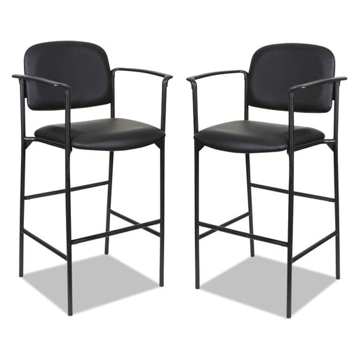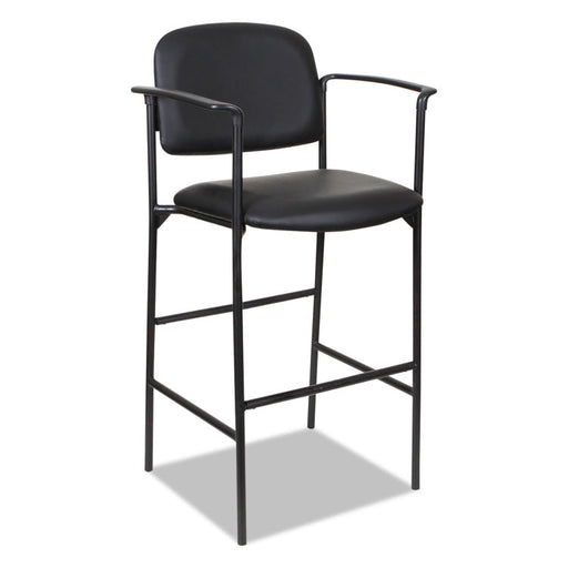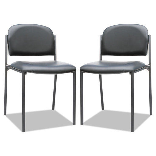 Multi-purpose chair with black PVC-free faux leather upholstery. Cushioned seat and black steel base with straight legs for comfort. Perfect for wa...