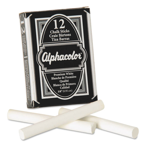 Alphacolor White Chalk, Low-Dust, 12 Sticks/Pack