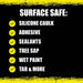 - Removes silicone caulk, contractor's adhesive, grease, tar, tape, tape residue, varnish, wax and glue.