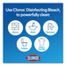Regular Bleach with CloroMax Technology, Clean Linen Scent, 43 oz Bottle, 6/CartonKeeps clothes whiter longer, disinfects 99.9% of germs (including norovirus, flu virus, MRSA, E. Coli, and Salmonella), plus, cleans and protects household surfaces (Packaging may vary).