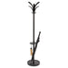Brio Coat Stand, 13.75w x 13.75d x 66.25h, Black. High capacity with six knobs and three hooks. Kind to clothes thanks to the large rounded pegs. Smart umbrella holder (up to six umbrellas) and a water retainer. Rotating head for easy access to clothes. Great stability with its weighted base. Easy assembly without tools. Mounting: Stand Alone; Width: 13.75"; Depth: 13.75"; Height: 66.25".