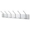 Metal Wall Rack, Three Ball-Tipped Double-Hooks, Metal, 18w x 3.75d x 7h, Satin. Chrome-plated double steel hooks with ball tips to help protect garments. Wall mounting hardware included. Mounting: Wall; Width: 18"; Depth: 3.75"; Height: 7".