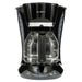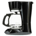 12-Cup Programmable Coffeemaker, Black. Ideal for busy households, this 12-cup programmable coffeemaker can be set to brew a full pot of fresh, hot coffee up to 24 hours in advance. It's ready when you want it and the 12-cup capacity means there's always plenty to go around. With the Pause 'N Serve feature you can pour a cup while the coffeemaker is still brewing by stopping the cycle momentarily. Removable filter basket makes clean-up easy. Dual water window allows you to easily monitor filling capacity. Two-hour auto shut-off maintains safety, even when you're not home. It is adaptable for water filtration (filter sold separately) so you can help reduce up to 97% of chlorine for better tasting coffee. Number of Cups: 12; Warmer: Yes; Width: 9.63"; Depth: 12.5".