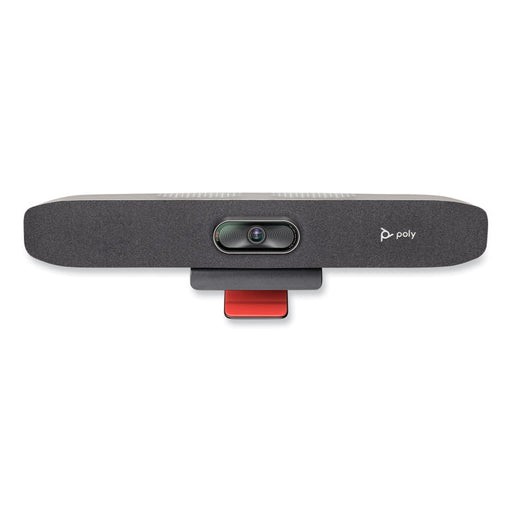 The Poly Studio R30 USB video bar's dynamic camera experience ensures users are seen clearly with pinpoint, accurate automatic framing and tracking...