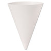Bare Treated Paper Cone Water Cups, 4.25 oz, White, 200/Bag, 25 Bags/Carton. Extra-strong treated paper minimizes the potential for messy leaks. Traditional conical shape, as it makes set-and-forget placement impossible, helps reduce common-area litter. Cups fit all standard water-cooler cup dispensers. Cup Type: Cold; Capacity (Volume): 4.250 oz; Material(s): Paper; Color(s): White.