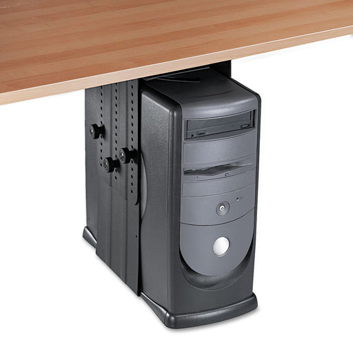 Mounts under worksurface to provide easy access. Adjusts to accommodate different sized models. Supports up to 60 lbs. Antiskid pads prevent CPU fr...