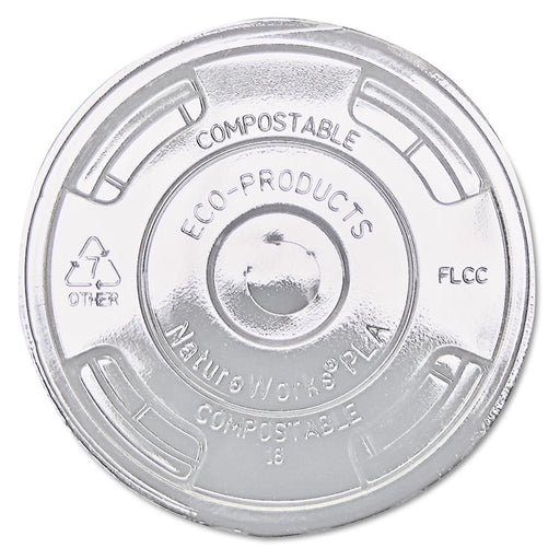 Corn clear plastic lids (PLA). Flat. Fits: 9-24 oz Cups; Material(s): Corn Plastic; Color(s): Clear; For Use With: Eco-Products® EPCC9SGS, EPCC12GS...