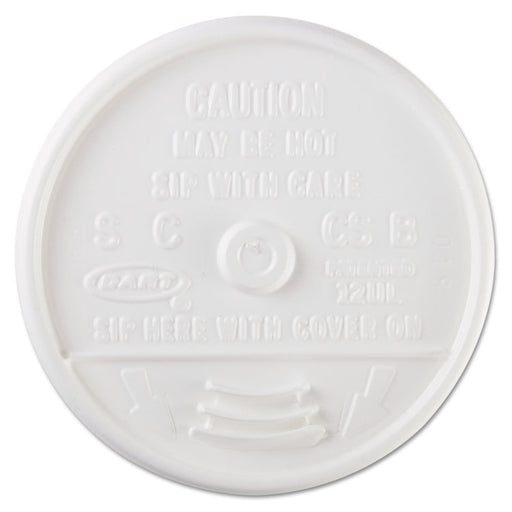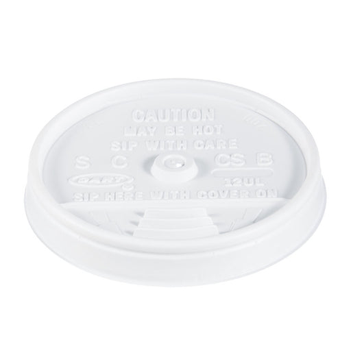 Vented to allow steam to escape. Reduces dribbles and spills. Open sip-through design. Fits: 10, 12 oz Foam Cups; Material(s): Plastic; Color(s): W...