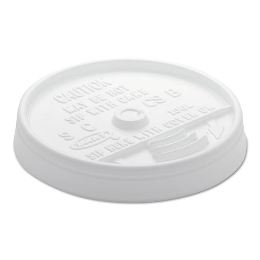 Vented to allow steam to escape. Reduces dribbles and spills. Open sip-through design. Fits: 10, 12 oz Foam Cups; Material(s): Plastic; Color(s): W...