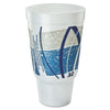 Impulse Hot/Cold Foam Drinking Cups, 32 oz, White/Blue/Gray, 25/Bag, 20/Carton. Well-insulated foam cup has dual use—one cup for both hot and cold drinks. Helps maintain both hot and cold beverages at their optimal temperature. The insulation also reduces condensation, preserves carbonation and slows the melt of ice. The swirling patterns on the cups blend well in any food service environment. Cup Type: Hot/Cold; Capacity (Volume): 32 oz; Material(s): Foam; Color(s): White/Blue/Gray.