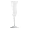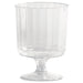 Classic Crystal Plastic Wine Glasses on Pedestals, 5 oz, Clear, Fluted, 10/Pack, 24 Packs/Carton. This stemware is elegantly fluted to mimic the appearance of fine crystal. These glasses offer all the beauty of crystal without the delicate breakability. They provide an impressive, upscale appearance to any setting. Unlike crystal, they are disposable, with no mess to clean up. Cup Type: Cold; Capacity (Volume): 5 oz; Material(s): Plastic; Color(s): Clear.