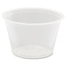 Conex Complements Portion/Medicine Cups, 4 oz, Clear, 125/Bag, 20 Bags/Carton. Easily distribute food and beverage samples, filled-to-order condiments as well as liquid- or pill-form meds. Handy containers provide the perfect portion for any purpose. Made of crack-resistant polypropylene, they're ideal for many dining-, carryout- and medical-service applications. Cup Type: Portion; Capacity (Volume): 4 oz; Material(s): Plastic; Color(s): Clear.