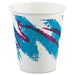 Jazz Paper Hot Cups, 6oz, Polycoated, 50/Bag, 20 Bags/Carton. Enjoy your favorite hot beverage without worrying about cup sturdiness. Engineered with strong sidewalls. Smooth, rolled rims for comfort, safety and optimal lid fit. Attractive two-color "tide" design. Cup Type: Hot; Capacity (Volume): 6 oz; Material(s): Paper; Color(s): White/Green/Purple.