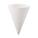 Rolled Rim Paper Cone Cups, 4.5oz, White, 200/Bag, 25 Bags/Carton. Keep a stack of these handy cone cups close to your water cooler. Tight-seal seam ensures leakproof performance. Easy, one-at-a-time dispensing minimizes waste. Rolled Rim. Cup Type: Cold; Capacity (Volume): 4.5 oz; Material(s): Paper; Color(s): White.