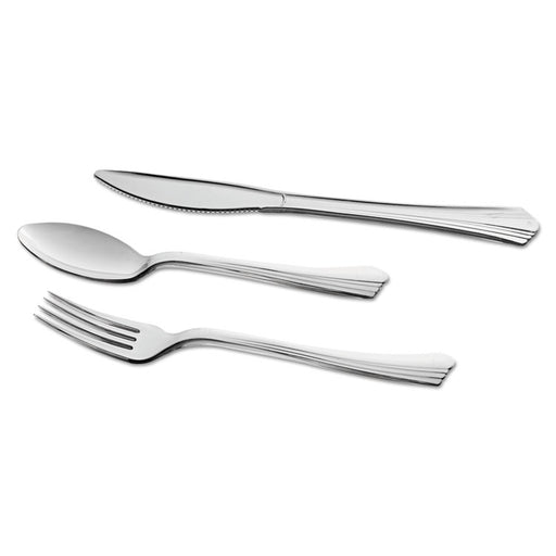 Get the convenience of disposable cutlery without sacrificing the look of real silverware. The heavyweight plastic of these utensils looks like rea...