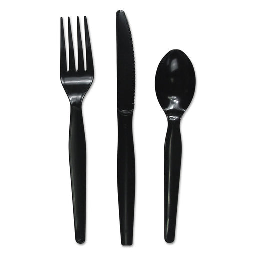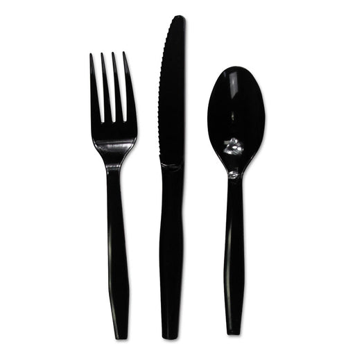 Three-Piece Cutlery Kit, Fork/Knife/Teaspoon, Heavyweight, Black, 250/Carton