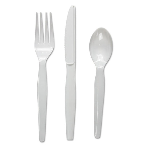 Three-Piece Cutlery Kit, Fork/Knife/Teaspoon, Heavyweight, White, 250/Carton