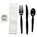Six-Piece Cutlery Kit, Condiment/Fork/Knife/Napkin/Spoon, Heavyweight, Black, 250/Carton