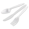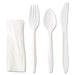 WraPolypropyleneed Cutlery Kit, Fork/Knife/Spoon/Napkin, White, 250/Carton. Ensure sanitary dispensing with individually wrapped utensil combos. All-in-one packaging streamlines order preparation and cafeteria line movement. Break-resistant, mediumweight plastic. Includes Fork, Knife, Spoon and Napkin. Utensils Type: Combo Set; Material(s): Plastic; Color(s): White; Grade: Mediumweight.