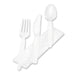 Wrapped Tableware/Napkin Packets, Fork/Knife/Spoon/Napkin, White, 250/Carton