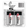 MAX Alkaline D Batteries, 1.5V, 2/Pack. Long-lasting power and innovation is what the Energizer® MAX® family is all about. Energizer® D batteries hold power for up to 10 years while in storage, so you have power when you need it most. When it comes to toys, portable radios, flashlights, and other valuable devices, you can feel confident knowing you have the long-lasting power and protection you expect from Energizer®. Battery Type: Alkaline; Battery Size: D; Voltage: 1.5 V; Material(s): Alkaline Manganese Dioxide.