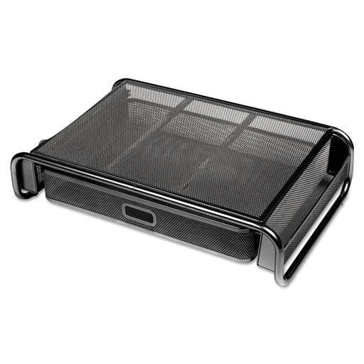 Metal Mesh Desktop Monitor Stand with Drawer, 18 x 11 3/4 x 5 1/8, Black