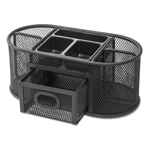 Metal Mesh Oval Desktop Organizer, 9 3/8 x 4 x 4 7/8, Black