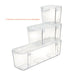 Stackable Caddy Organizer Containers, Large, Clear. Essential for bringing supplies with you, or organizing a small space. Stack and carry multiple caddies with the “lift & lock” feature. Hinged snap-tight lids keep contents secure and are easy to remove when you’re ready to work. Clear storage containers let you see items easily. Desktop Supplies Organizer Type: Stackable Caddy; Number of Compartments: 1; Overall Width: 13.24"; Overall Depth: 4".