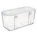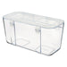 Stackable Caddy Organizer, Medium, Plastic, 8.8 x 4 x 4.38, White. Essential for bringing supplies with you, or organizing a small space. Stack and carry multiple caddies with the “lift & lock” feature. Hinged snap-tight lids keep contents secure and are easy to remove when you’re ready to work. Clear storage containers let you see items easily. Desktop Supplies Organizer Type: Stackable Caddy; Number of Compartments: 1; Overall Width: 8.8"; Overall Depth: 4".